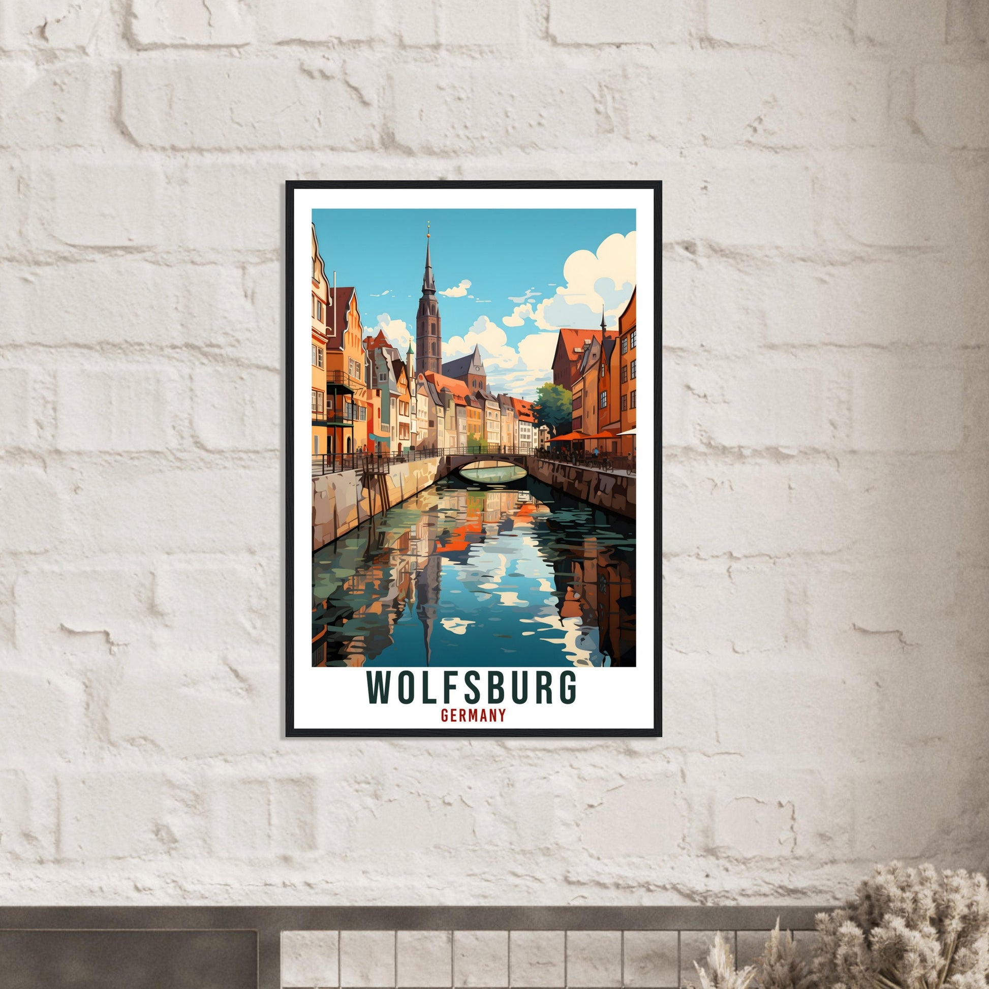 Transport yourself back to Wolfsburg, Germany. Whether you lived there, visited there or are from there, travel back with this Wolfsburg travel poster. Visit the sounds, smells, tastes, colors and culture every time you look at your new travel print.