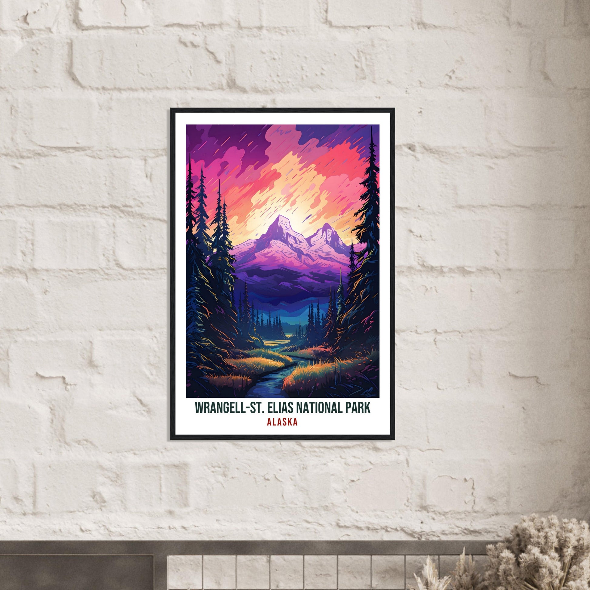 Transport yourself back to Wrangell-St Elias National Park, Alaska. Whether you lived there, visited there or are from there, travel back with this Wrangell-St Elias travel poster. Visit the sounds, smells, tastes, colors and culture every time you look at your new travel print.